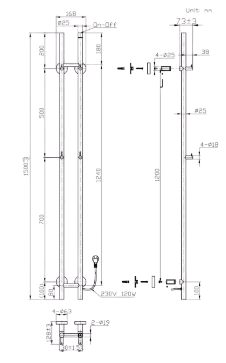 De handdoekdroger wordt compleet geleverd met stekker en een aansluitsnoer van 120 cm.