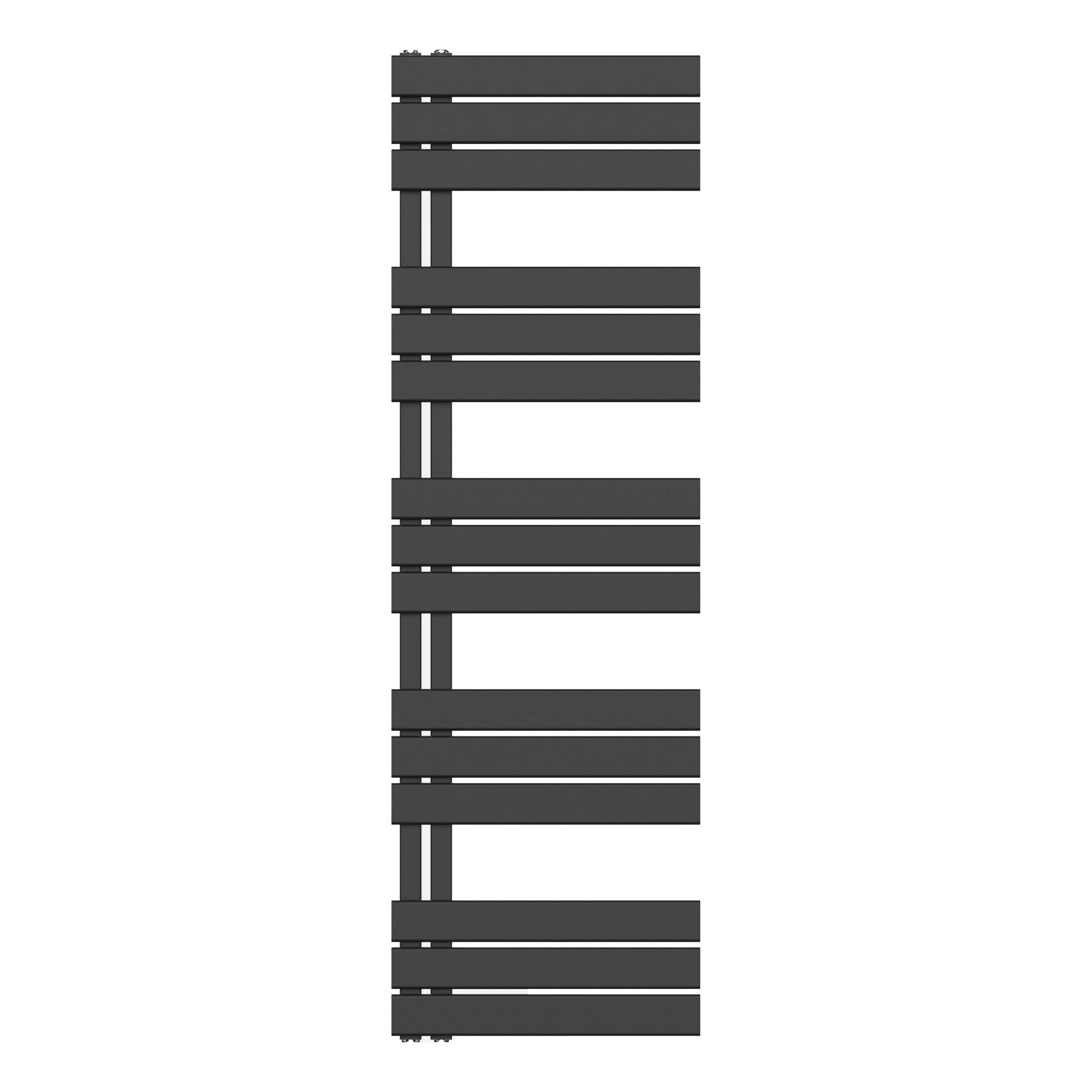 De handdoekradiatoren met een zij-onder aansluiting, die wij aanbieden, zijn mat zwart.