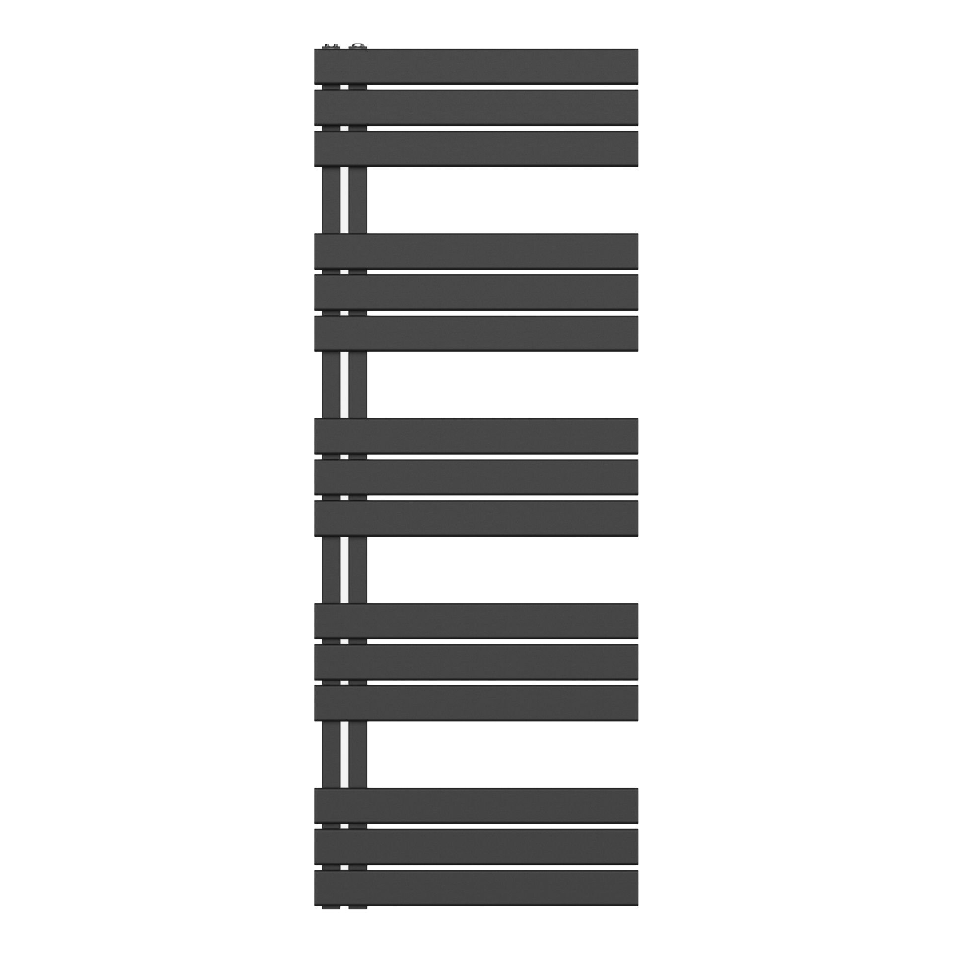 De handdoekradiatoren met een zij-onder aansluiting, die wij aanbieden, zijn mat zwart.
