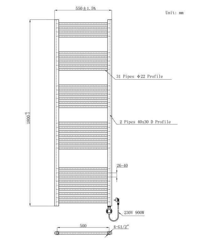 De radiator is voorzien van een standaard netsnoer met stekker, waardoor u geen ingewikkelde installatie hoeft uit te voeren of leidingen hoeft aan te sluiten op een cv-systeem.
