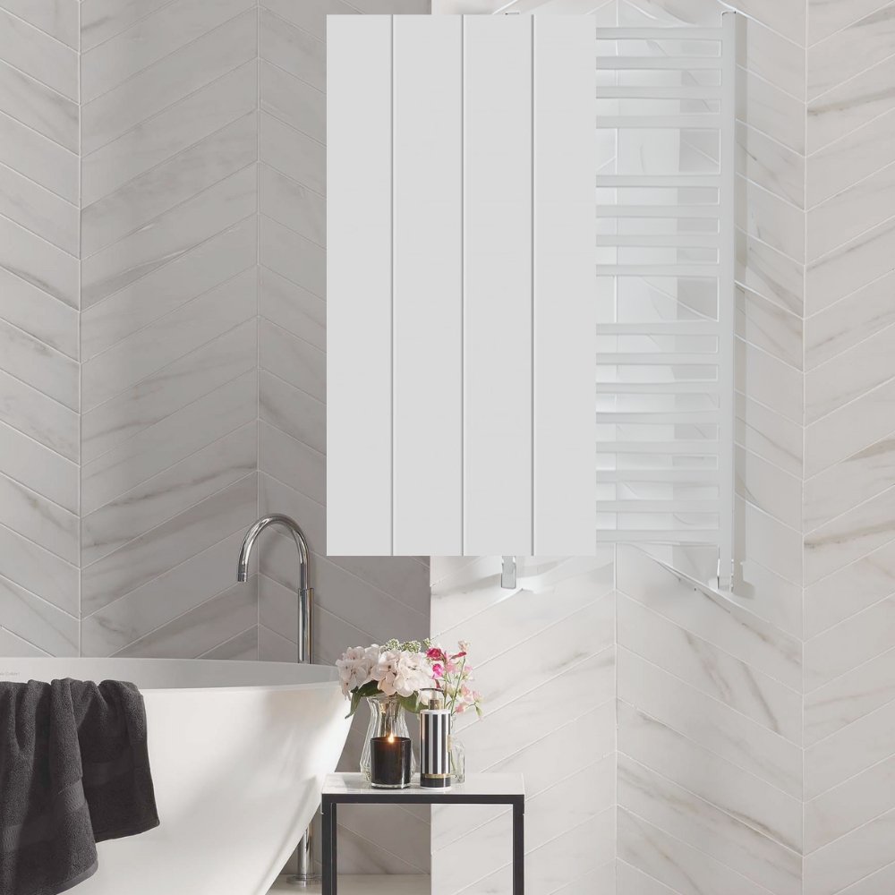 500x1600 - 906 watt | handdoekradiator gestreept wit zij- & middenaansluiting