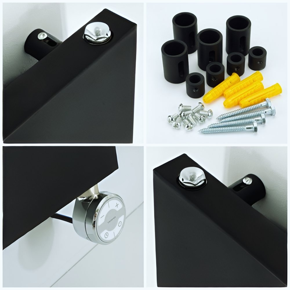 De elektrische handdoekradiatoren die wij aanbieden zijn afgewerkt in een stijlvolle zijdeglans zwarte lak (RAL 9005) en voorzien van een vlakke voorplaat.