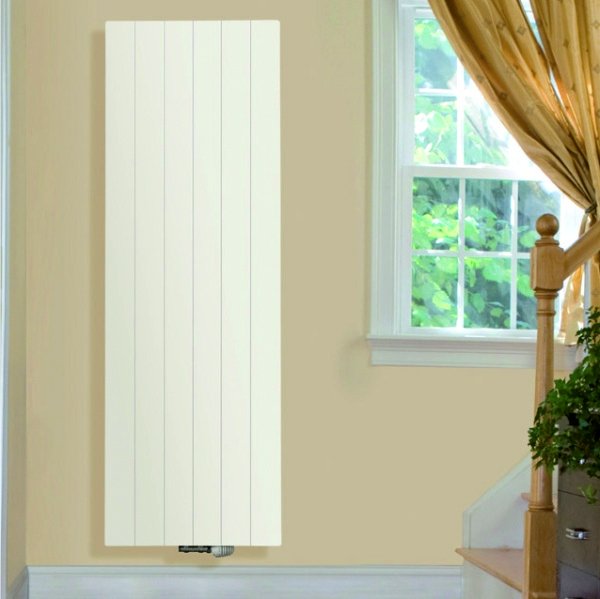 Deze verticale type 20 paneelradiator (dubbele plaat zonder convectoren) is ontworpen voor een ruimtebesparend en krachtig ontwerp met een uitgesproken uitstraling. Met een diepte van slechts 7,2 cm is hij ideaal voor smalle wanden of kleinere ruimtes. Dankzij de gegolfde voorzijde en de subtiele zijkanten voegt deze radiator een decoratief element toe aan de ruimte, zonder in te boeten op functionaliteit. De RAL 9016 (zijdeglans wit) afwerking maakt het geheel compleet en laat de radiator naadloos aansluiten bij lichte of moderne interieurs.