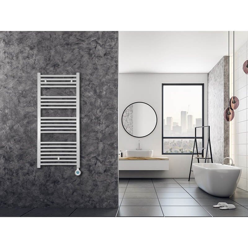 De elektrische handdoekradiatoren die wij aanbieden zijn afgewerkt in een tijdloze zijdeglans witte lak (RAL 9016).