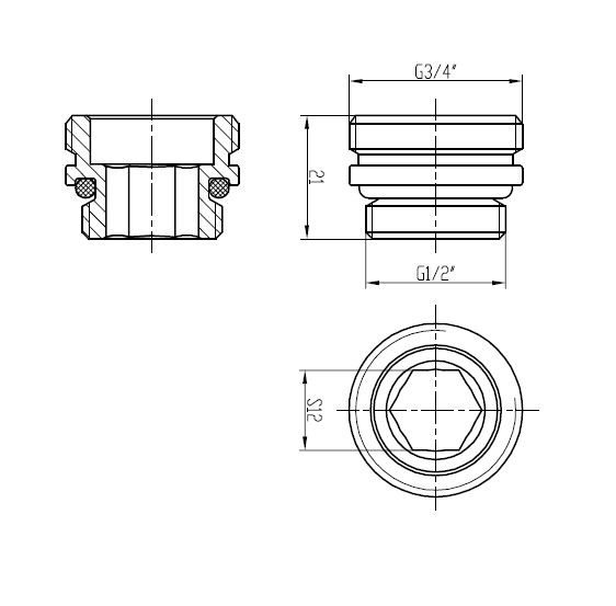 Adaptor 3/4" x 1/2", midden-onderaansluiting, chroom