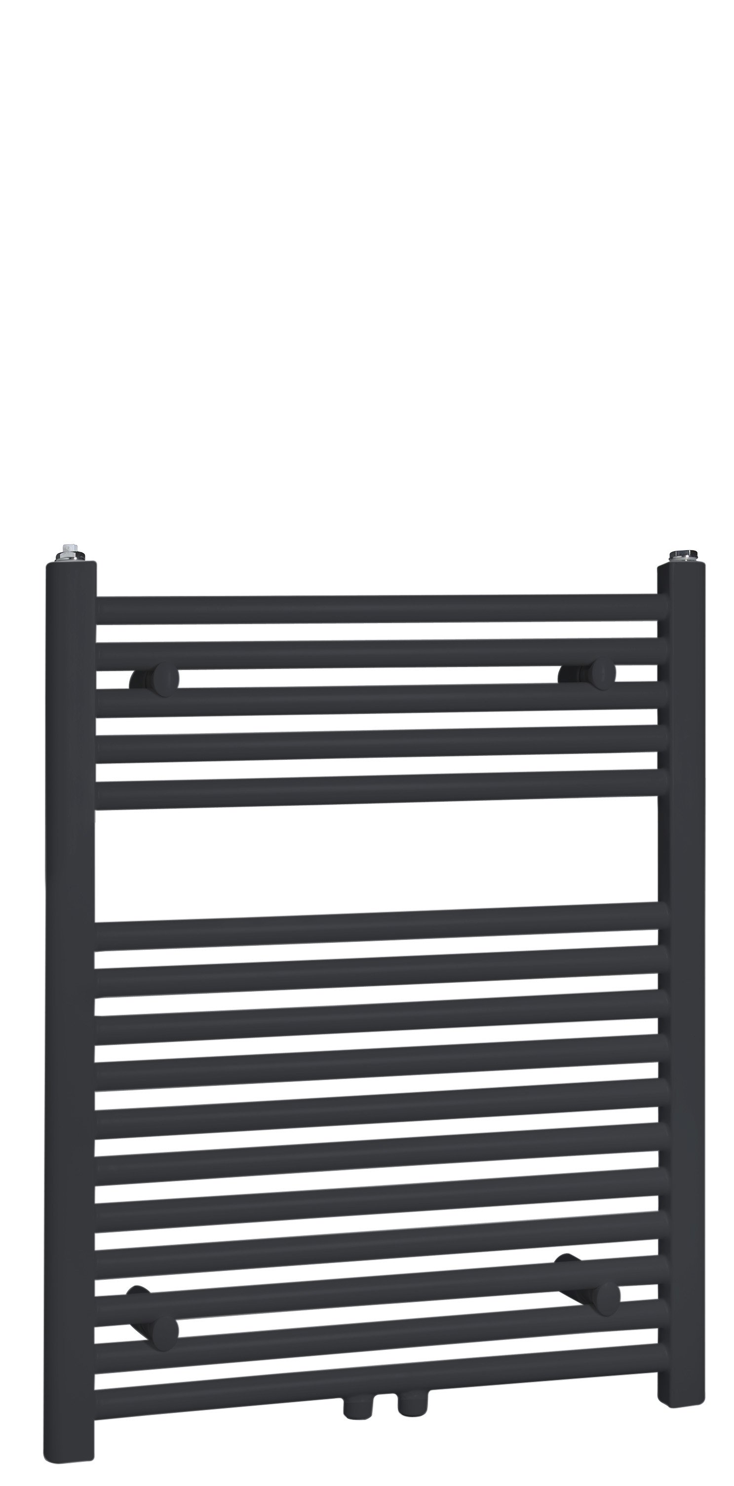 De handdoekradiatoren met een midden-onder aansluiting, die wij aanbieden, zijn mat zwart.