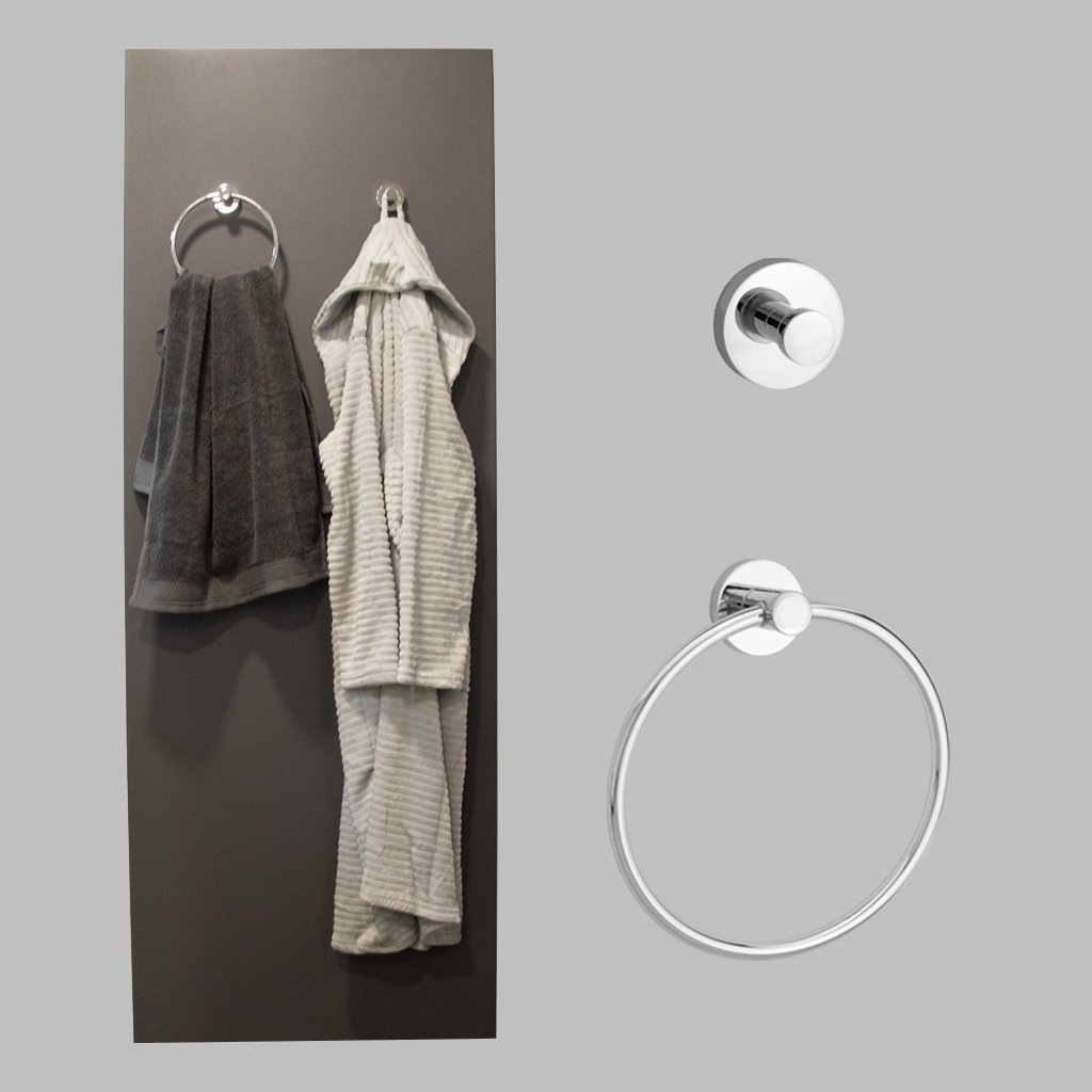 BSXL Magneet-line chroom – combi-set handdoekhaak enkel + gesloten handdoekring