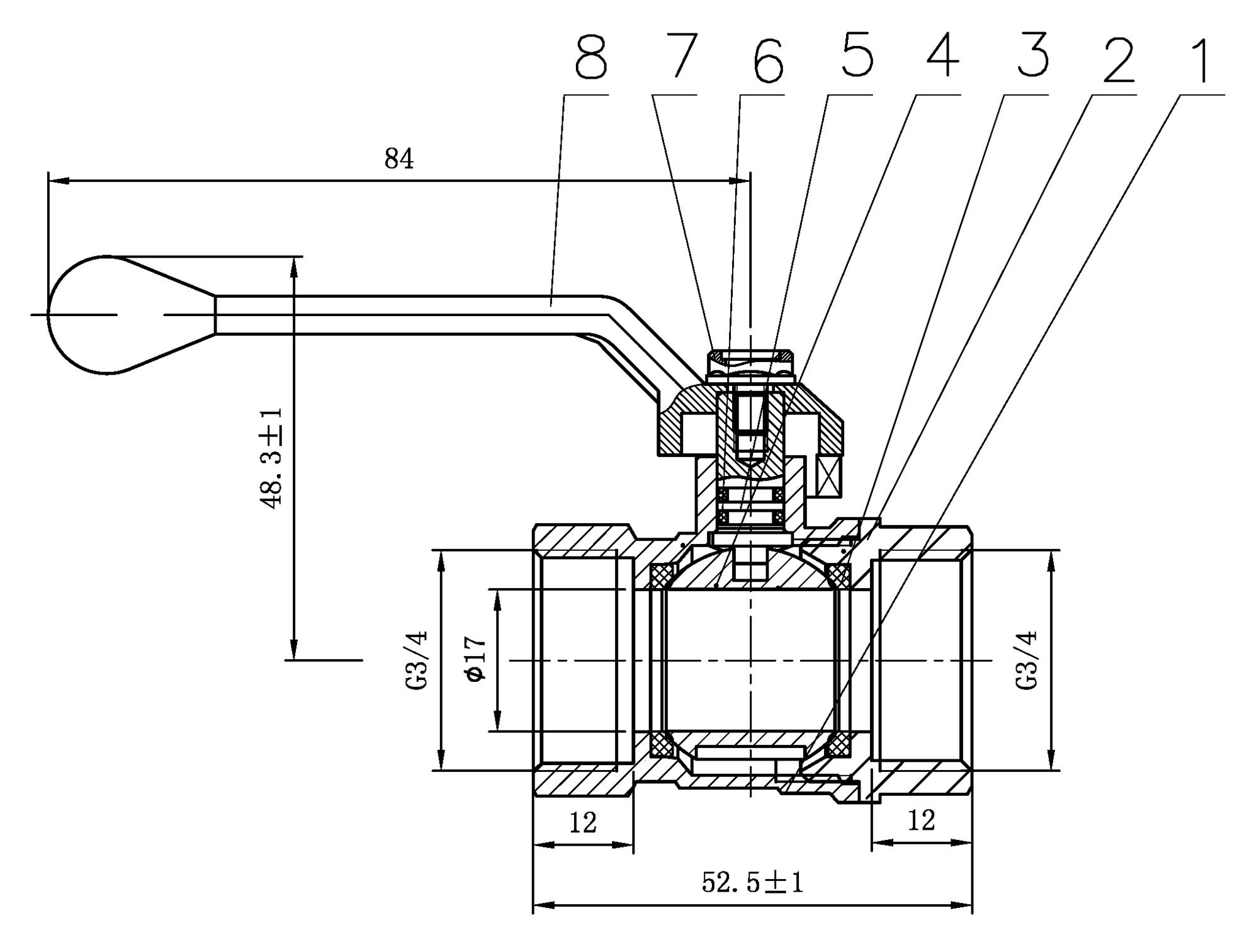 Riko 1050 kogelkraan met aluminium hendel 3/4