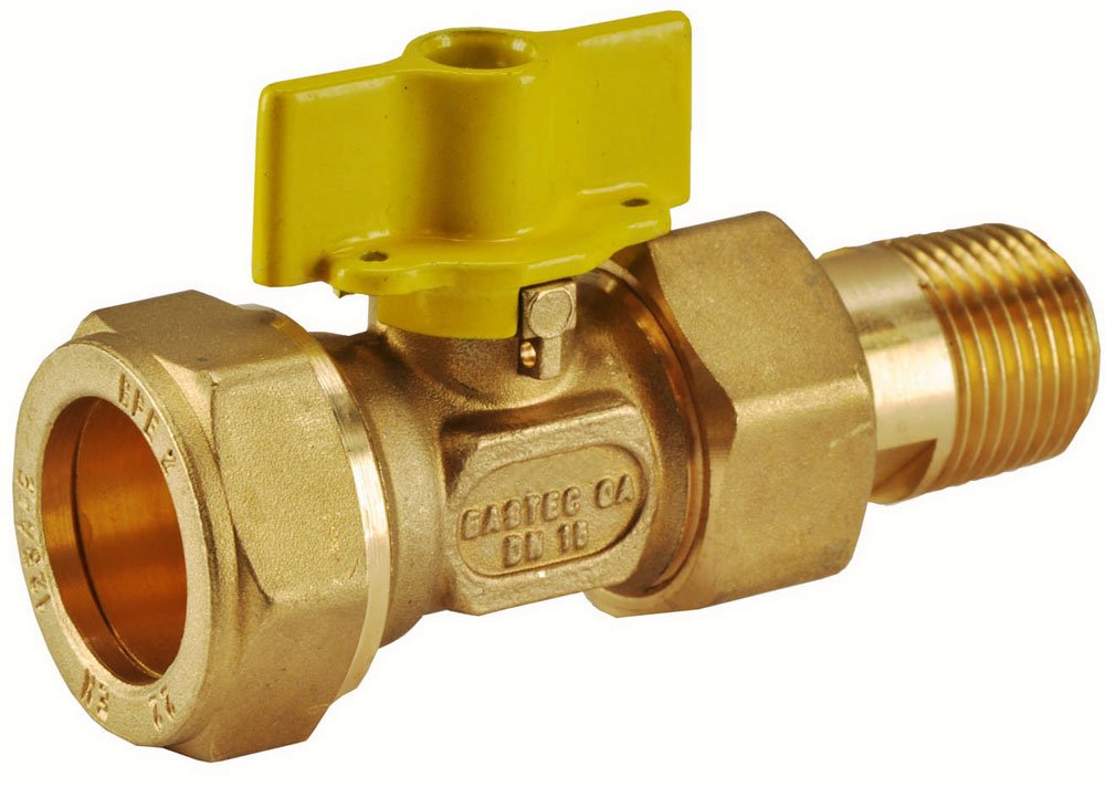 Riko gaskogelkraan 22 mm knel x 1/2" buitendraad