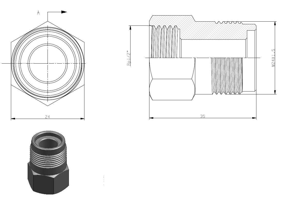 Riko gaskoppeling 1/2" binnendraad x M24, vernikkeld