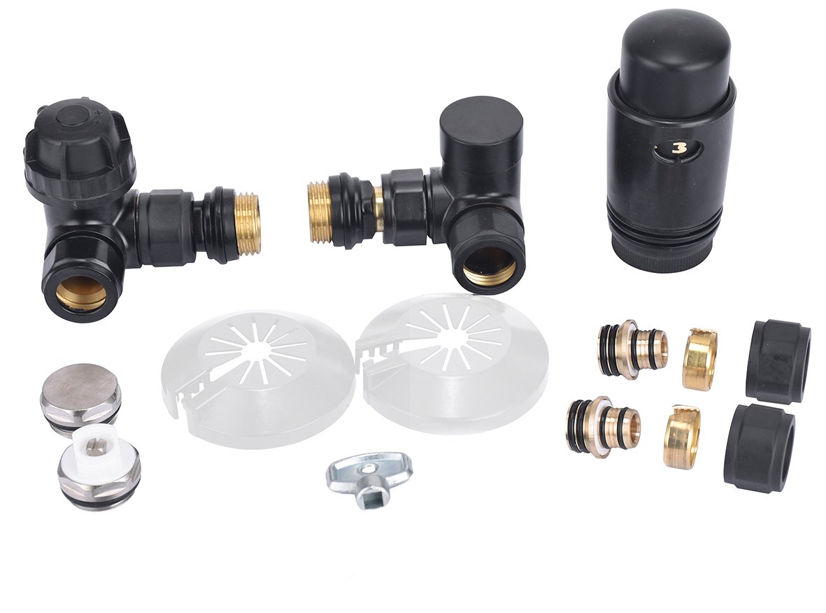 Riko Luxe thermostatische radiator aansluitset, haaks verkeerd rechts, mat zwart