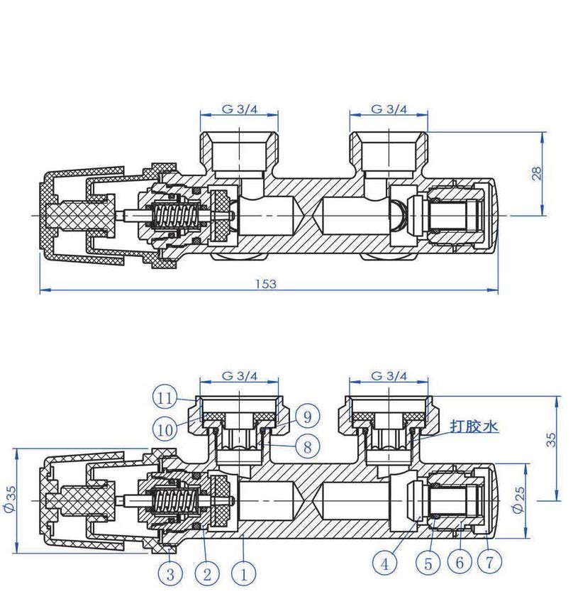 Thermostatisch onderblok 3/4", haaks-rechts, mat zwart