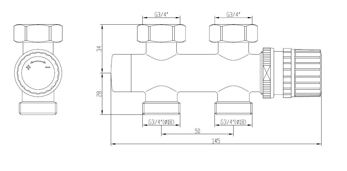 Thermostatisch onderblok 3/4", recht, chroom