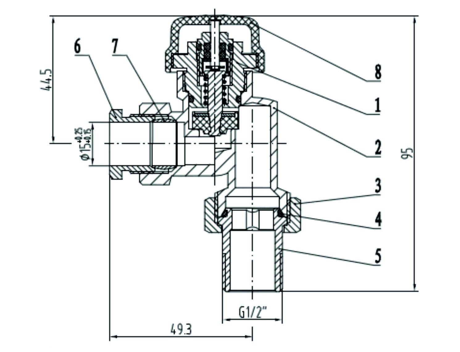 Thermostatisch ventiel zonder knop 1/2", axiaal, inclusief adaptor